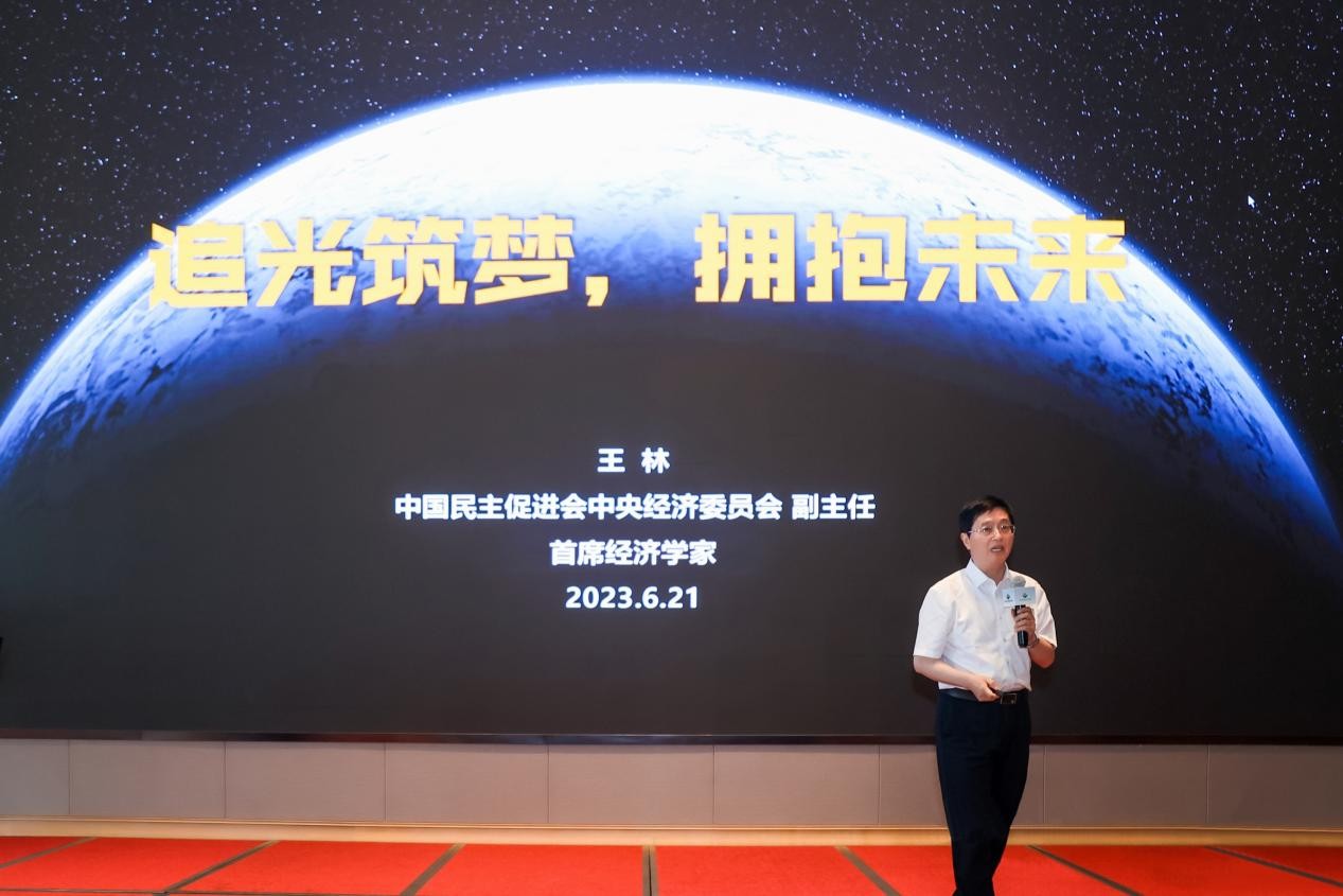 在“名師親授”環(huán)節(jié),中國民主促進會中央經(jīng)濟委員會副主任、著名經(jīng)濟學(xué)家王林教授進行“追光筑夢,擁抱未來”的主題分享,解讀經(jīng)濟現(xiàn)狀、創(chuàng)新發(fā)展、未來機遇,為企業(yè)家?guī)怼皠?chuàng)變的力量”。