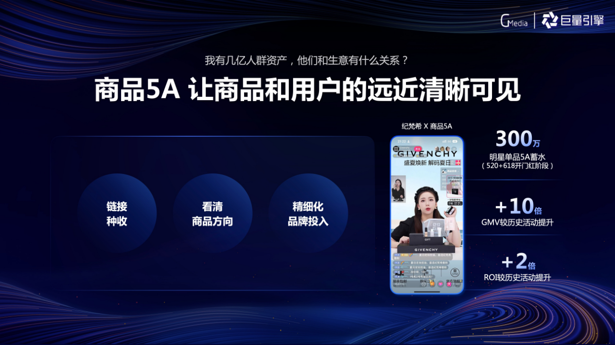 今年618,紀(jì)梵希利用商品5A,定向分析了貴價(jià)的散粉市場(chǎng),診斷明星單品——「四宮格散粉」的SPU5A結(jié)構(gòu),精準(zhǔn)地找到該單品的核心人群與高潛人群,然后通過場(chǎng)景化破圈,營(yíng)銷場(chǎng)和經(jīng)營(yíng)場(chǎng)的銜接聯(lián)動(dòng),實(shí)現(xiàn)人均資產(chǎn)和生意雙增長(zhǎng)。