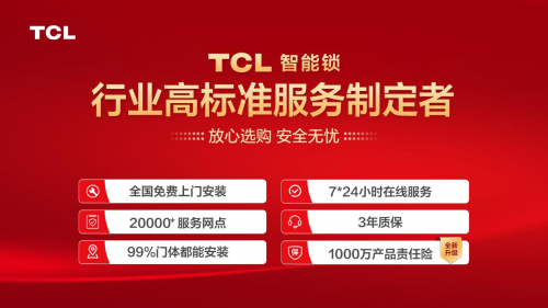 作為行業(yè)高標(biāo)準(zhǔn)服務(wù)制定者,TCL智能鎖不光帶來了全新的技術(shù),為了讓用戶做到選購放心,安全無憂。全國20000+服務(wù)網(wǎng)點為用戶提供免費上門安裝服務(wù),線上客服7*24小時服務(wù);除此之外下單即可享三年產(chǎn)品質(zhì)保和1000萬產(chǎn)品責(zé)任險。TCL實打?qū)嵉馁N心售后服務(wù)只為讓更多用戶選購無憂。