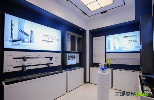 “光健康”是三雄極光倡導(dǎo)的核心理念之一,品牌體驗(yàn)館特設(shè)健康智能燈光展示區(qū),色溫墻直觀呈現(xiàn)出暖色溫和冷色溫的對(duì)比效果,專業(yè)圖解墻從理論的角度帶領(lǐng)大家理解不同光色對(duì)人身心影響,兩相結(jié)合將健康智能照明的價(jià)值體現(xiàn)得淋漓盡致。