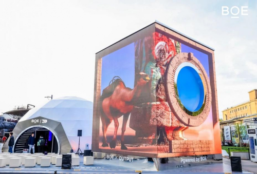 O_SPACE展館外部,一座高7.6米、寬6米、長6米的巨型數(shù)字立方體吸引往來行人紛紛駐足打卡拍照,這是領(lǐng) 先數(shù)字內(nèi)容平臺OUTPUT為“你好,BOE”專屬定制的行業(yè)最 大尺寸MLED四面裸眼3D交互式數(shù)字藝術(shù)裝置,整體分為交互面和觀看面兩部分,交互面采用京東方新Mini LED技術(shù)搭建出獨特的“O”型,參觀者通過觸摸交互臺并轉(zhuǎn)動超維空間內(nèi)的數(shù)字地球,就可以看到展現(xiàn)未來城市、智慧出行和智慧生活的《萬象生活》,展現(xiàn)人類對宇宙探索和向往的《奇觀秘境》,展現(xiàn)科技與生態(tài)和諧共生的《未來生態(tài)》;在觀看面,觀眾可以看到將敦煌文化中九色鹿、飛天等元素栩栩如生呈現(xiàn)的《古今無界》,連接夢三國英雄與現(xiàn)實的《英雄夢界》,以及展現(xiàn)京東方30周年歷程及對未來期望的《Powered by BOE》,通過變換不同的3D內(nèi)容及與觀眾的互動,呈現(xiàn)出一場場極具視覺沖擊的感官盛宴。