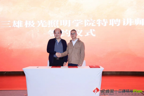 會議上,三雄極光品牌管理中心總監(jiān)李全與嘉賓們進行簽約儀式,隆重聘請彭海浪、蔣繆奕、施恒照、余顯開等嘉賓為特聘講師,將進一步擴大三雄極光照明學院實力,為打造學習實踐、圈層交流、產(chǎn)學設(shè)融合、跨界合作為一體的平臺體系提供專業(yè)力量。