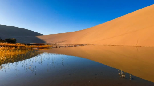 伴隨著前行的腳步,尋跡考察團來到了“沙漠第 一泉”鳴沙山月牙泉。水質(zhì)甘冽,澄清如鏡,綿歷古今,沙不進泉,水不濁涸。鐵魚鼓浪,星草含芒,水靜印月,薈萃一方,故稱“月泉曉澈”。