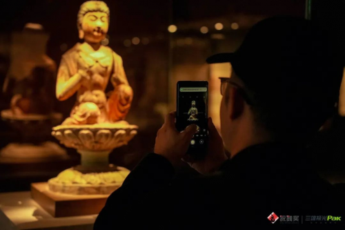 向西而行,便是世界上現(xiàn)存歷史悠久、規(guī)模大、內(nèi)容豐富、保存完整的藝術(shù)寶庫——莫高窟。走進洞窟,每一處仿佛都有自己的故事,那是每一位創(chuàng)造者用心血雕琢出的愿景和信仰。尋跡考察團紛紛感嘆莫高窟之美,沉浸于那五色雜陳的仙禽、紅消綠冷的飛天、璀璨華麗的珠翠。