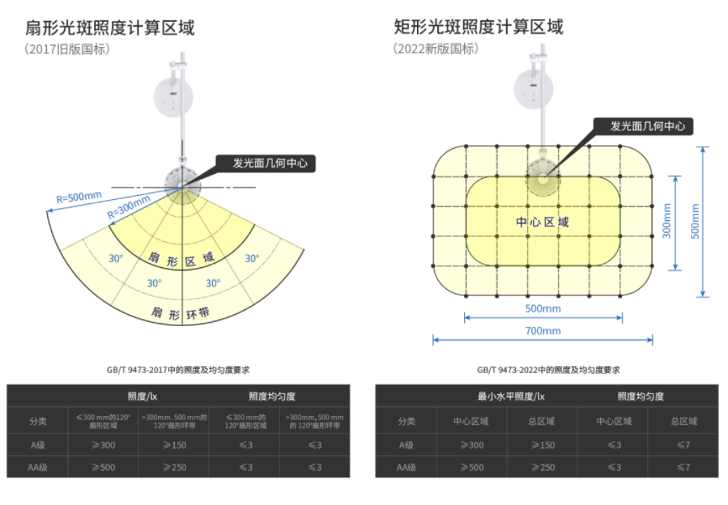 新版國(guó)標(biāo)測(cè)算范圍不再“分區(qū)”,總區(qū)域包含中心區(qū)域,照度均勻度要求更高!