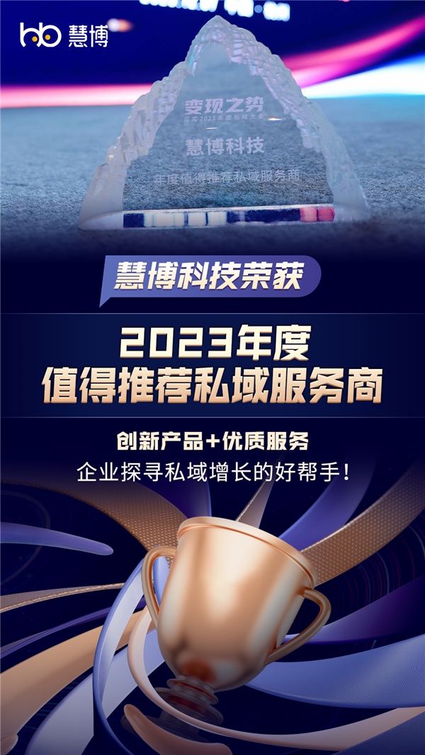 慧博科技榮獲「2023年度值得推薦私域服務(wù)商」獎(jiǎng),不僅是對(duì)慧博科技過去一年在私域運(yùn)營(yíng)領(lǐng)域的努力和成就的肯定,也是對(duì)慧博科技未來發(fā)展的鼓勵(lì)和支持。