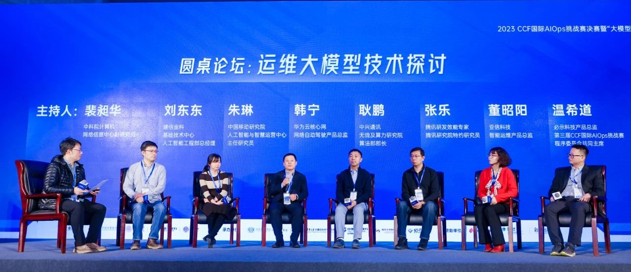 圓桌論壇一“運維大模型技術探討”,由中科院計算機網(wǎng)絡信息中心副研究員裴昶華主持,建信金融科技有限責任公司基礎技術中心人工智能工程部總經(jīng)理劉東東、中國移動研究院人工智能與智慧運營中心主任研究員朱琳、華為云核心網(wǎng)網(wǎng)絡自動駕駛產(chǎn)品總監(jiān)韓寧、中興通訊無線及算力研究院算法部部長耿鵬、騰訊研發(fā)效能專家、騰訊研究院特約研究員張樂、亞信科技智能運維產(chǎn)品總監(jiān)董昭陽、必示科技產(chǎn)品總監(jiān)溫希道共同參與,圍繞訓練運維大語言模型、指標大模型、日志大模型的必要性,幻覺在實際場景中的影響及解決方案,大模型在AIOps的終極形態(tài)等問題,闡述了各自的觀點。