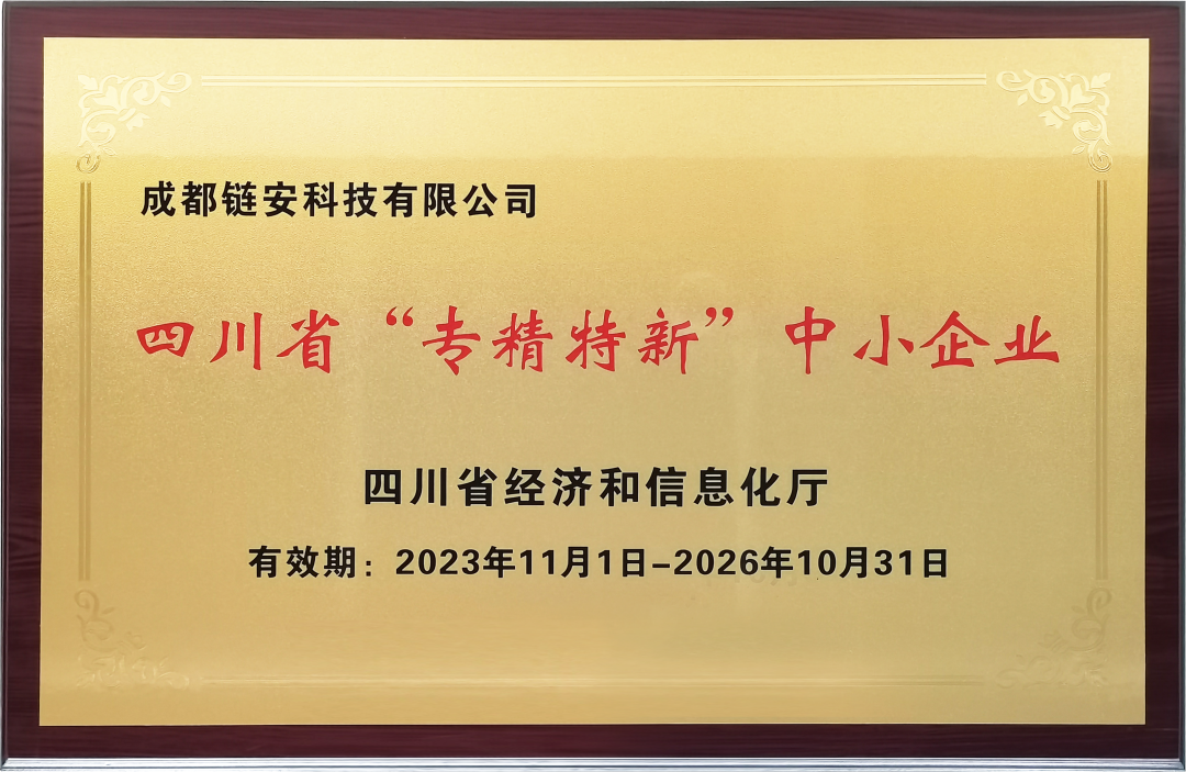 2020年,成都鏈安首次入選四川“專精特新”企業(yè)名單,2023年再次復(fù)核通過(guò)“專精特新”企業(yè)是相關(guān)部門對(duì)成都鏈安業(yè)務(wù)發(fā)展、技術(shù)創(chuàng)新、市場(chǎng)開(kāi)拓等方面的高度認(rèn)可。