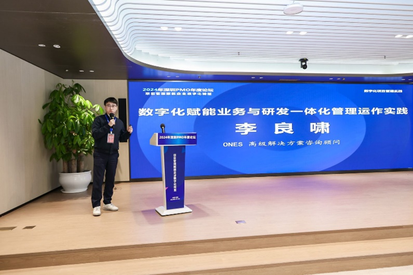 ONES高級(jí)解決方案咨詢顧問(wèn)李良嘯發(fā)表了《數(shù)字化賦能業(yè)務(wù)與研發(fā)一體化管理運(yùn)作實(shí)踐》的主題演講。他詳細(xì)介紹了數(shù)字化賦能業(yè)務(wù)與研發(fā)一體化管理運(yùn)作的理念、方法和實(shí)踐經(jīng)驗(yàn),同時(shí)也強(qiáng)調(diào)了通過(guò)跨職能團(tuán)隊(duì)的協(xié)作與整合,讓業(yè)務(wù)與研發(fā)團(tuán)隊(duì)緊密合作和交流,才能賦能業(yè)務(wù)價(jià)值最大化和投產(chǎn)精準(zhǔn)化,提升企業(yè)響應(yīng)市場(chǎng)和應(yīng)對(duì)變化的能力。