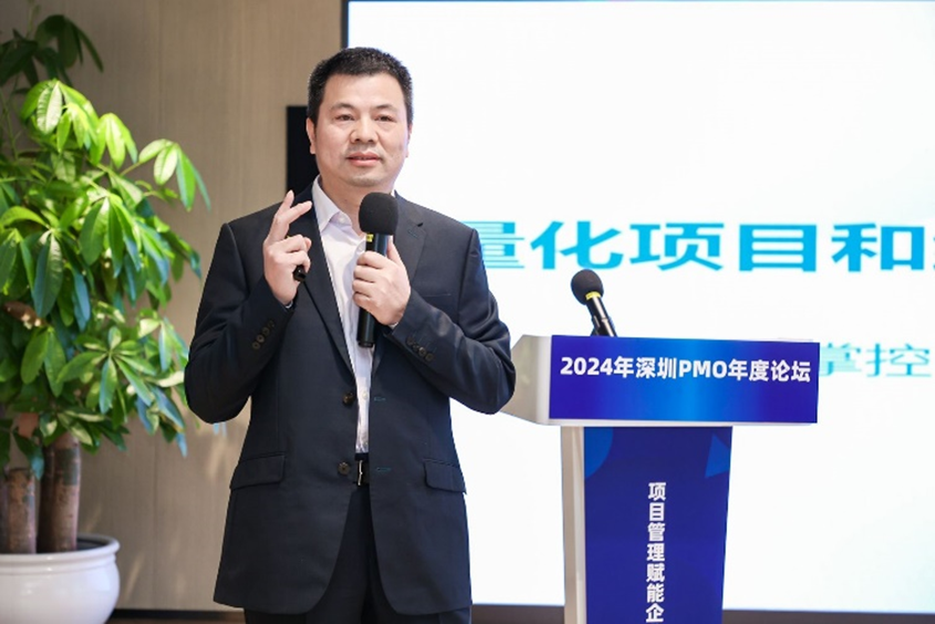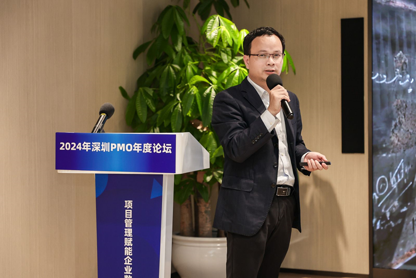 深圳市軟件行業(yè)協(xié)會(huì)執(zhí)行會(huì)長(zhǎng)鄧愛(ài)國(guó)發(fā)表了熱情洋溢的致辭。他強(qiáng)調(diào)了PMO在數(shù)字化轉(zhuǎn)型中的關(guān)鍵作用,并表達(dá)了對(duì)與會(huì)者們的熱烈歡迎和對(duì)論壇的殷切期望。他表示,PMO是項(xiàng)目管理中的重要角色,承擔(dān)著承上啟下的作用,對(duì)于企業(yè)數(shù)字化轉(zhuǎn)型的成功至關(guān)重要。
