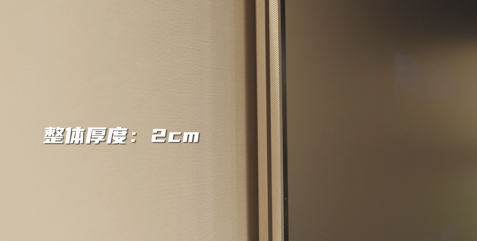 海信激光電視L5K還是一款兼具家居美觀的電視。安裝完成后,屏幕厚度只有2cm,而且由于屏幕不含電子元件,它可以完全無縫貼墻安裝,無論正看側(cè)看,都不會有突兀感。