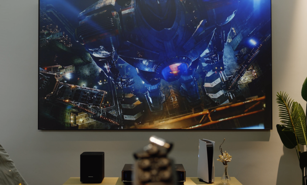 當(dāng)然,聲音也是沉浸感營造的重要一環(huán),L5K采用哈曼卡頓音響系統(tǒng),有兩個全屏揚聲器和兩個天空音揚聲器,同時支持杜比全景聲技術(shù),哪怕是微風(fēng)拂過的聲響,也能細(xì)致還原,360度環(huán)繞聲場如同置身拍攝現(xiàn)場。高功率低音炮則增強(qiáng)了L5K的震撼力和表現(xiàn)力,完美詮釋了什么叫余音繞梁,音樂播放效果也不會讓人失望。