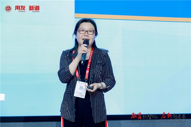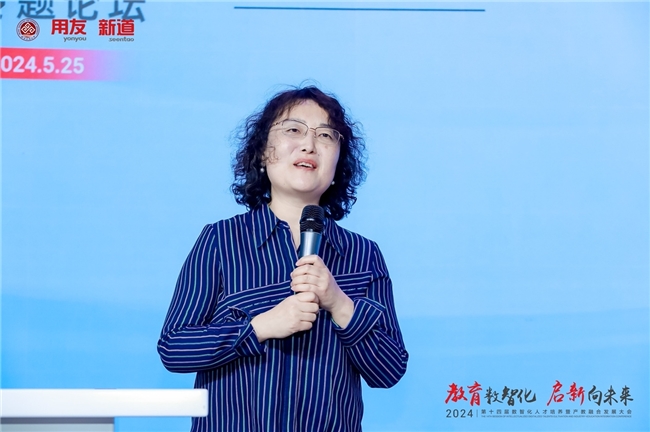 北方工業(yè)大學(xué)教務(wù)處副處長、數(shù)字產(chǎn)業(yè)學(xué)院副院長徐繼寧發(fā)表題為“數(shù)智應(yīng)用‘高素質(zhì)應(yīng)用型’人才培養(yǎng)——數(shù)字產(chǎn)業(yè)學(xué)院建設(shè)探索”的主題演講。她介紹,北方工業(yè)大學(xué)“數(shù)字產(chǎn)業(yè)學(xué)院”,立足北京數(shù)字技術(shù)的創(chuàng)新策源地,支持學(xué)校高水應(yīng)用型大學(xué)建設(shè),產(chǎn)業(yè)學(xué)院建設(shè)具備4個(gè)基本特征,分別是產(chǎn)業(yè)需求為導(dǎo)向、跨專業(yè)合作為特征、項(xiàng)目制為載體、學(xué)生發(fā)展為中心。在這個(gè)基礎(chǔ)上,“數(shù)字產(chǎn)業(yè)學(xué)院”以云景融合和項(xiàng)目驅(qū)動(dòng)為抓手,攜手用友新道和眾多合作企業(yè),分別在校內(nèi)建了校企聯(lián)合場景化實(shí)驗(yàn)室,并開展產(chǎn)教融合項(xiàng)目工程實(shí)踐,在產(chǎn)科教融合和數(shù)字化轉(zhuǎn)型雙輪驅(qū)動(dòng)下,為社會(huì)培養(yǎng)未來能夠引領(lǐng)或服務(wù)產(chǎn)業(yè)數(shù)字化轉(zhuǎn)型的高素質(zhì)應(yīng)用型人才。