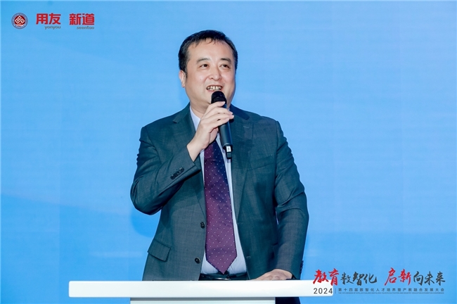 新道科技股份有限公司新工科事業(yè)部副經(jīng)理、IT 領(lǐng)域?qū)<胰斡莱贪l(fā)表題為“產(chǎn)業(yè)案例實(shí)訓(xùn)實(shí)踐——大數(shù)據(jù)專業(yè)從基礎(chǔ)實(shí)驗(yàn)實(shí)訓(xùn)到產(chǎn)業(yè)案例綜合實(shí)訓(xùn)轉(zhuǎn)型升級(jí)”的主題演講。他在演講中圍繞大數(shù)據(jù)專業(yè)實(shí)驗(yàn)實(shí)訓(xùn)的轉(zhuǎn)型升級(jí)展開,介紹了時(shí)代背景、現(xiàn)狀、轉(zhuǎn)型升級(jí)路徑及未來展望。他強(qiáng)調(diào),在政策推動(dòng)下,大數(shù)據(jù)產(chǎn)業(yè)迅速發(fā)展,實(shí)驗(yàn)實(shí)訓(xùn)需緊跟產(chǎn)業(yè)需求,通過教學(xué)資源、教學(xué)方式和內(nèi)容的更新,提升教育質(zhì)量,培養(yǎng)復(fù)合型人才,助力數(shù)字化轉(zhuǎn)型。