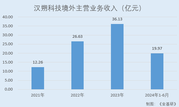 2021-2023年及2024年1-6月,漢朔科技境外主營業(yè)務收入分別為12.26億元、26.63億元、36.13億元、19.97億元,占當期主營業(yè)務收入的比例分別為76.04%、93.05%、95.72%、94.32%。2024年上半年,漢朔科技境外收入占比小幅下降,主要系國內(nèi)收入同比快速增長。