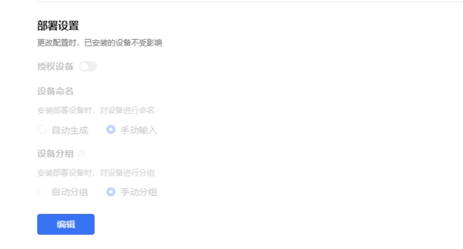 同時,向日葵提供“部署設(shè)置”功能:安裝包在首次安裝時,可以設(shè)置為必須手動分組或者手動輸入設(shè)備命名,以貫徹企業(yè)的分組策略,使得分組的制度設(shè)計有效落地。