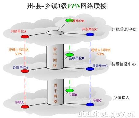 阿壩州電子政務(wù)外網(wǎng)采用“王”字型廣域網(wǎng)絡(luò)結(jié)構(gòu),電子政務(wù)外網(wǎng)采用核心層、匯聚層、接入層典型的三層結(jié)構(gòu),各個(gè)接入單位的局域網(wǎng)構(gòu)成用戶層。核心層使用ATM鏈路,完成各個(gè)節(jié)點(diǎn)之間的數(shù)據(jù)交換,匯聚層完成各接入用戶的數(shù)據(jù)匯總,通過一條線路送到骨干層。我州電子政務(wù)外網(wǎng)采用VPN技術(shù)。通過VPN服務(wù),為各個(gè)接入單位實(shí)現(xiàn)透明的“縱網(wǎng)”聯(lián)接;并通過VPN 技術(shù)建設(shè)“橫網(wǎng)”。各個(gè)“縱網(wǎng)”之間實(shí)現(xiàn)了IP地址的重疊,原則上“縱網(wǎng)”保留其系統(tǒng)內(nèi)部規(guī)劃的IP使用方案。