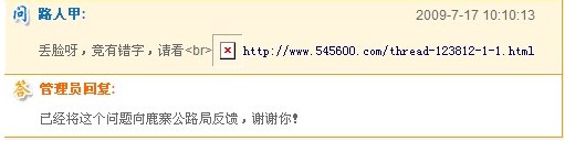 這些網(wǎng)友的困惑中,有關(guān)于公路法律法規(guī)的疑問,管理員以相關(guān)條例或者是相關(guān)網(wǎng)站作答;有關(guān)于其他單位的疑問,管理員提供對口單位的地址或者電話;有關(guān)于道路施工進展的問題,管理員盡量提供準(zhǔn)確的竣工時間和進展;有對公路管理人員的投訴,管理員也問清時間地點事件及時反映,甚至有網(wǎng)友的抱怨發(fā)牢騷,管理員也耐心作答,委婉勸說。