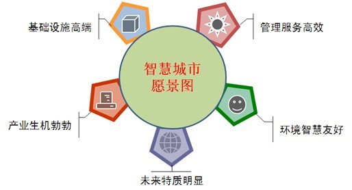 國(guó)脈互聯(lián)認(rèn)為未來(lái)的"智慧城市"是城市信息化的3.0,是基于數(shù)字城市(網(wǎng)絡(luò)城市)之上,把物聯(lián)網(wǎng)作為第五基礎(chǔ)設(shè)施,利用和融合更為先進(jìn)的技術(shù),促進(jìn)物人之間的互動(dòng)能力,提高城市的智能化程度,是一種基礎(chǔ)設(shè)施高端、管理服務(wù)高效、產(chǎn)業(yè)生機(jī)勃勃、環(huán)境智慧友好、未來(lái)特質(zhì)明顯的新型城市形態(tài)。"智慧城市"愿景圖如下圖所示: