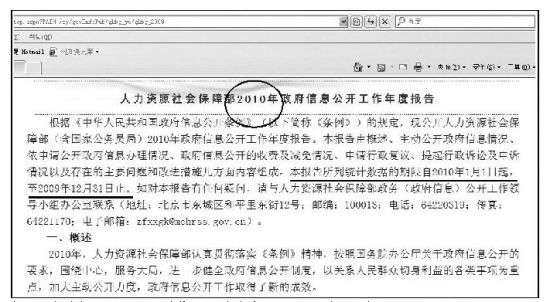 29日上午,記者登錄人力資源和社會(huì)保障部官網(wǎng)發(fā)現(xiàn),2010年度“信息公開(kāi)年報(bào)”中所顯示確如媒體所說(shuō),時(shí)間期限有誤。另外,打開(kāi)2009年度政府信息公開(kāi)報(bào)告發(fā)現(xiàn),2009年的年度報(bào)告為2010年的相關(guān)信息。