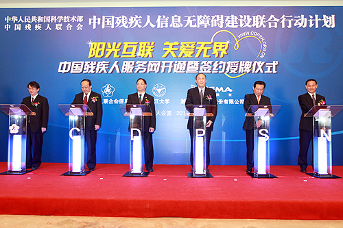 “陽光互聯(lián),關(guān)愛無界”,中國殘疾人服務(wù)網(wǎng)在歡樂、祥和的氣氛中正式開通,用于開通的電子設(shè)備將通過中國殘疾人服務(wù)網(wǎng)愛心捐贈頻道首筆捐贈給六名優(yōu)秀貧困的殘疾學(xué)生。