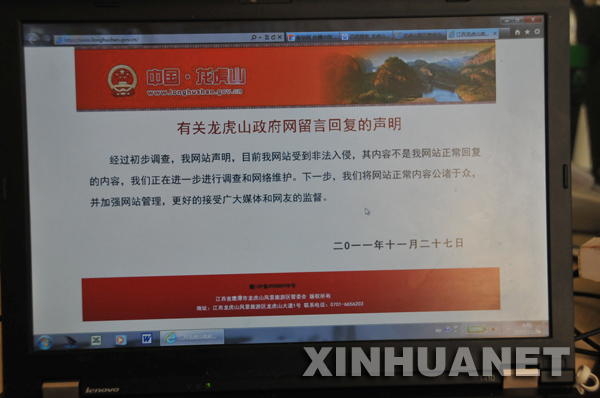 11月27日,龍虎山風(fēng)景旅游區(qū)管委會發(fā)表聲明稱,網(wǎng)站受到入侵,并非正?;貜?fù)內(nèi)容。管委會宣傳部長童麗芳對“中國網(wǎng)事”記者表示,“鷹潭市公安局網(wǎng)監(jiān)支隊及市信息中心專業(yè)技術(shù)人員,對政務(wù)網(wǎng)相關(guān)后臺數(shù)據(jù)進行了調(diào)查,證實黑客利用程序漏洞進入政務(wù)網(wǎng),并對留言回復(fù)進行了惡意篡改?!苯刂劣浾甙l(fā)稿,這一事件還在調(diào)查中。
