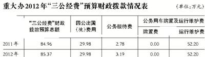 北京市重大辦還單列了2012年“三公經(jīng)費(fèi)”預(yù)算財(cái)政撥款情況表。市重大辦表示,該部門因公出國(境)費(fèi)用、公務(wù)接待費(fèi)、公務(wù)用車購置和運(yùn)行維護(hù)費(fèi)開支單位只含本級,無所屬下級單位。2012年“三公經(jīng)費(fèi)”財(cái)政撥款預(yù)算85.37萬元,比2011年“三公經(jīng)費(fèi)”財(cái)政撥款預(yù)算調(diào)增了0.41萬元。