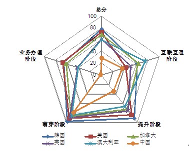 圖2 2010年我國(guó)與發(fā)達(dá)國(guó)家電子政務(wù)在線服務(wù)能力比較