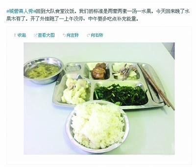 記者注意到,當天中午,錢立吃的飯菜、閱讀的書以及練啞鈴的圖片都出現(xiàn)在了微博中,甚至連帶有GPS定位功能的對講機也被拿出來秀了一把。