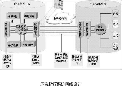 電子政務(wù)網(wǎng)是由內(nèi)網(wǎng)、專網(wǎng)和外網(wǎng)組成,如果要承載龐大的突發(fā)公共事件應(yīng)急信息系統(tǒng),就必須具備很大的帶寬保障、多業(yè)務(wù)承載能力和網(wǎng)絡(luò)自適應(yīng)能力,同時考慮到應(yīng)急信息系統(tǒng)不僅僅是政務(wù)范疇,甚至是社會范疇,因此在信息網(wǎng)絡(luò)的架構(gòu)方面也必須考慮到和公眾網(wǎng)絡(luò)以及專網(wǎng)的連接。在這樣的信息系統(tǒng)中,從信息的采集、匯集、存儲和計(jì)算,最終為決策提供依據(jù),通過將決策高效分解、存儲、下達(dá)和執(zhí)行,來保障能夠最大限度地減少突發(fā)公共事件給人民生命財(cái)產(chǎn)安全帶來的損害。