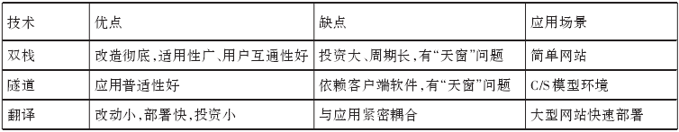 表1網(wǎng)站應(yīng)用IPv6遷移技術(shù)比較