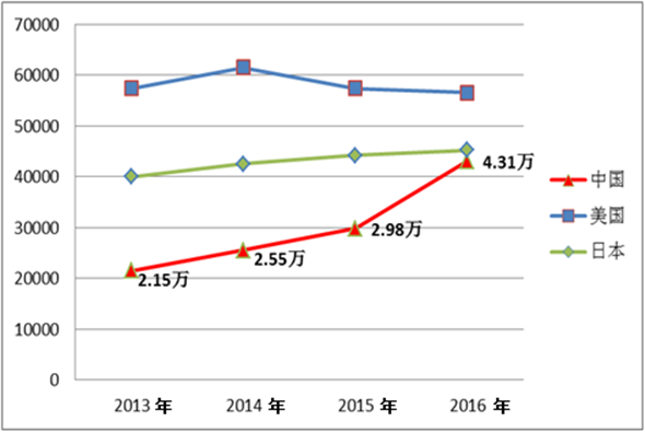 圖1 主要國家信息技術(shù)領(lǐng)域國際專利申請數(shù)比較