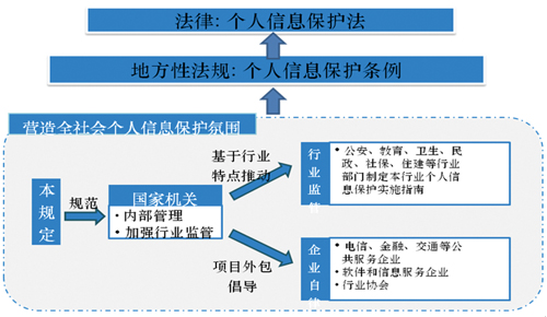 在實踐探索基礎(chǔ)上,達到以下目標:一是國家機關(guān)能夠管理好部門內(nèi)部掌握的個人信息,做到不違法;二是行業(yè)主管部門可基于文件要求和行業(yè)特點,制定適合本行業(yè)的個人信息保護規(guī)定與實施指南,加強行業(yè)監(jiān)管;三是企業(yè)通過參與國家機關(guān)外包項目,逐步建立內(nèi)部個人信息保護制度,不斷增強個人信息保護意識;四是隨著全社會個人信息保護氛圍的逐步形成,將制定個人信息保護地方性法規(guī);五是在個人信息保護地方性法規(guī)實施一段時間后,待條件成熟時,可適時出臺個人信息保護法。