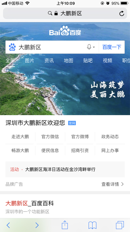 百度搜索“大鵬新區(qū)”展示頁面