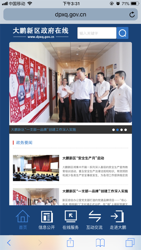 大鵬新區(qū)政府在線主頁面