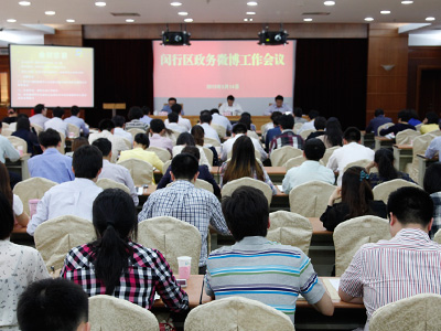 會上頒布了《閔行區(qū)政務微博管理辦法》;區(qū)門戶網站管理中心主任張樂海對全區(qū)政務微博運營發(fā)布情況進行了點評;顓橋鎮(zhèn)、司法局、公安分局等三家單位分別作了交流發(fā)言;會議還邀請了新浪華東區(qū)總編室總監(jiān)胡悅女士為參會人員做微博工作培訓。各鎮(zhèn)、街道、莘莊工業(yè)區(qū),各委辦局政務微博分管領導、負責人、微博管理員和信息報送員以及人民團體微博代表共計120人參加了此次會議。