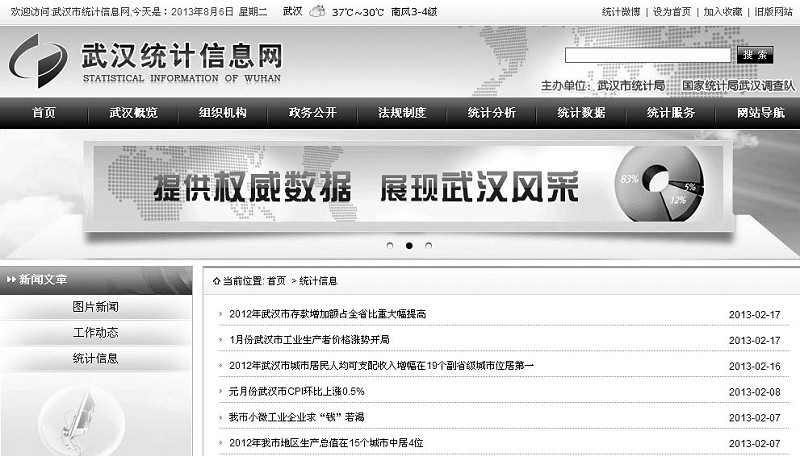 武漢市統(tǒng)計局網(wǎng)站截屏