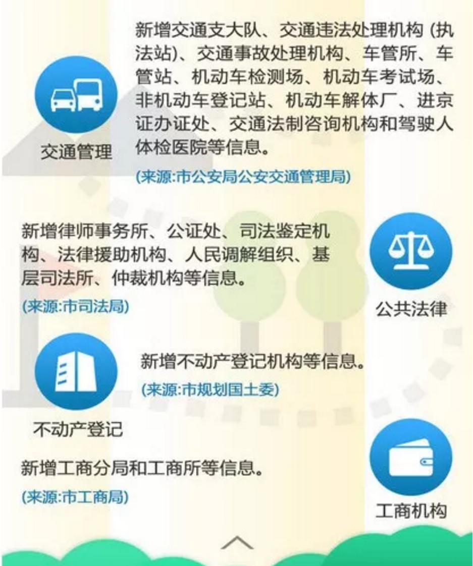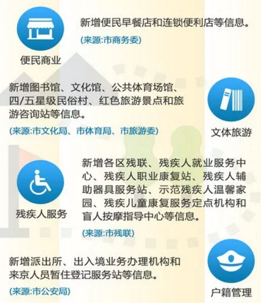 該負責人介紹,在現(xiàn)有的地圖基礎上,今年的地圖內(nèi)容圍繞疏解整治促提升、城市精細化管理、優(yōu)化營商環(huán)境等全市中心工作,系統(tǒng)覆蓋教育、醫(yī)療、民政、社保、交通、企業(yè)稅務、工商注冊、便民商業(yè)、不動產(chǎn)登記、公共文化服務、公共法律服務、政務服務等重點民生領域,地圖不僅涉及的行業(yè)進一步增加,點位信息也進一步擴展,查詢內(nèi)容進一步豐富,更加全面反映政府在促進首都高質(zhì)量發(fā)展、加強公共服務、保障改善民生方面的工作進展和成效。
