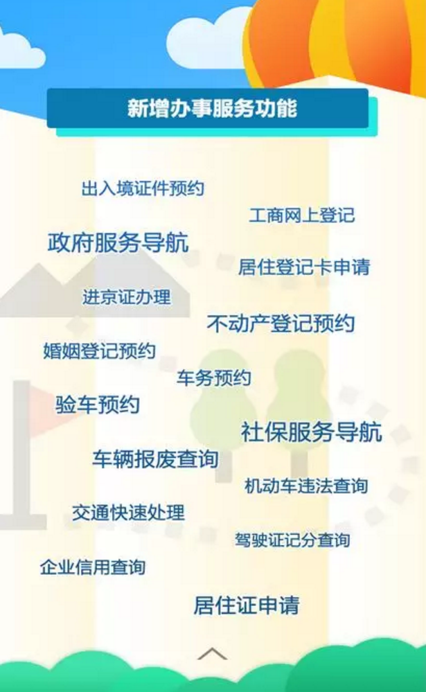 此外,結(jié)合公眾使用頻率較高的辦事功能,實現(xiàn)工商登記申請、車務手續(xù)預約、不動產(chǎn)登記預約、社會保險服務導航、政務服務導航等17項事項一鍵導入、一圖通辦。
