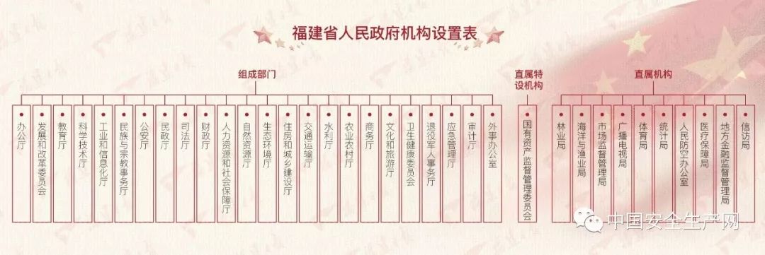 《福建省省級(jí)機(jī)構(gòu)改革實(shí)施方案》明確,福建省省級(jí)共設(shè)置黨政機(jī)構(gòu)60個(gè)。黨委機(jī)構(gòu)19個(gè),其中,紀(jì)檢監(jiān)察機(jī)關(guān)1個(gè),工作機(jī)關(guān)15個(gè),工作機(jī)關(guān)管理的機(jī)關(guān)3個(gè)。政府機(jī)構(gòu)41個(gè),其中,省政府辦公廳和組成部門(mén)24個(gè),直屬特設(shè)機(jī)構(gòu)1個(gè),直屬機(jī)構(gòu)10個(gè),部門(mén)管理機(jī)構(gòu)6個(gè)。