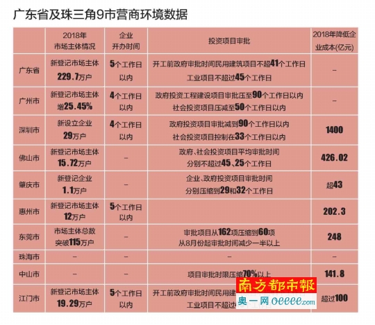 數(shù)據(jù)顯示,廣東省的企業(yè)開辦時間壓縮至5個工作日以內(nèi),新登記各類市場主體229.7萬戶、總量達1146萬戶;廣州、深圳的企業(yè)開辦時間均壓縮至4個工作日以內(nèi),領先全省水平。其中,廣州市去年開辟工商登記快捷通道,辦理工商執(zhí)照最快一天、立等可取。