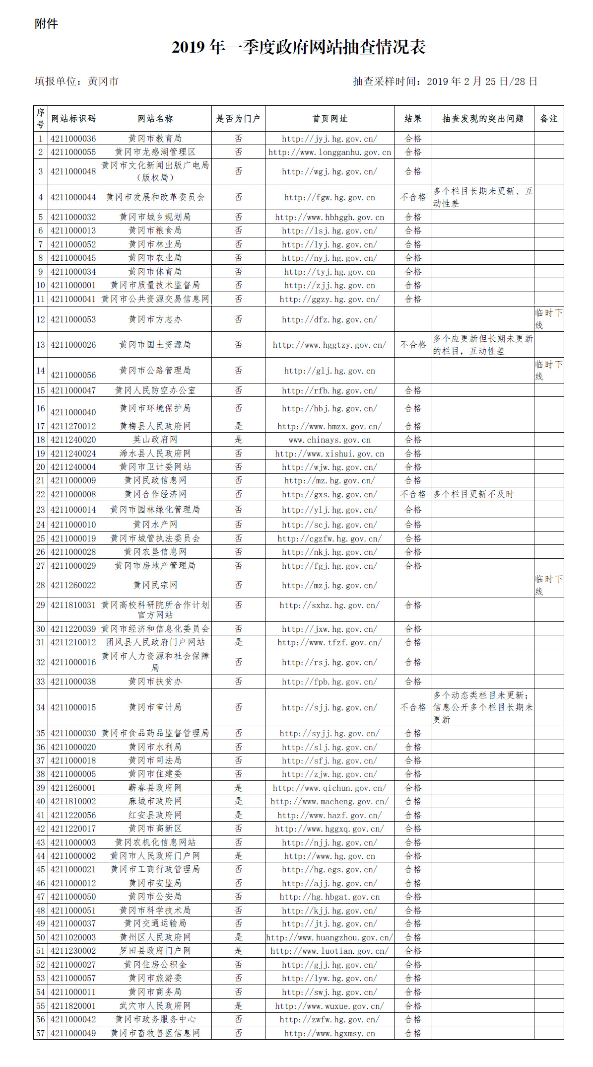 附件:2019年一季度政府網(wǎng)站抽查情況表