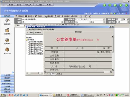 實(shí)現(xiàn)辦公信息自動(dòng)化是我們?cè)O(shè)計(jì)和實(shí)施電子政務(wù)應(yīng)用的主要任務(wù)。當(dāng)前外經(jīng)貿(mào)系統(tǒng)工作具體表現(xiàn)在外經(jīng)貿(mào)活動(dòng)多、項(xiàng)目多、出差多、流動(dòng)性大,市縣區(qū)需要聯(lián)系的工作內(nèi)容多、人員少,大多數(shù)同志工作特別繁忙,長(zhǎng)期處于超負(fù)荷運(yùn)轉(zhuǎn)狀態(tài),由此造成了各類辦公信息傳遞交流不及時(shí)、信息共享嚴(yán)重不足等問題,影響了整體工作質(zhì)量提高。為此我局有針對(duì)性地對(duì)辦公自動(dòng)化軟件進(jìn)行篩選,通過比較,于04年10月份最終選擇了用友致遠(yuǎn)A6協(xié)同管理軟件,該軟件具有以下特點(diǎn):