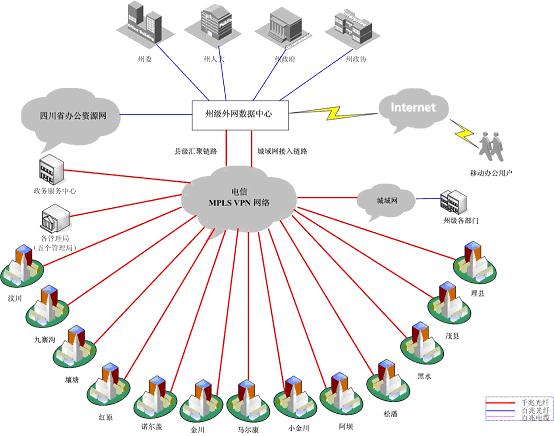 阿壩州縣電子政務(wù)網(wǎng)絡(luò)體系結(jié)構(gòu)如下圖: