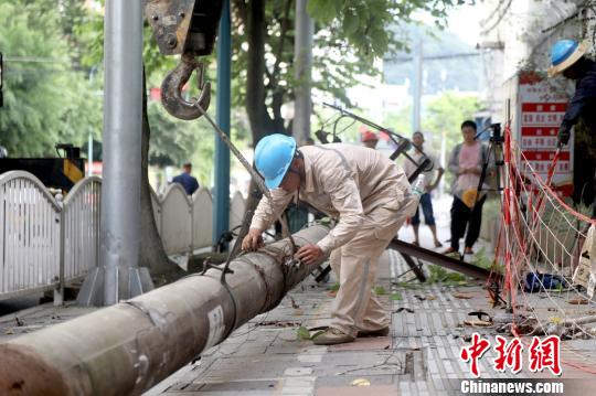 國網(wǎng)三明供電公司將“e三明”APP上群眾所反映的影響路人出行的路邊電桿拆除?!菍W(xué)生 攝