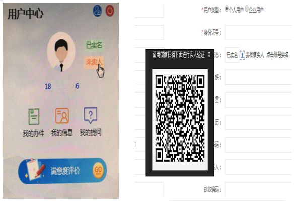 “一體化平臺”對用戶賬號進行了新的分級管理,在原來普通用戶、實名認證用戶兩種用戶的基礎上,新增實人認證用戶。普通用戶、實名認證用戶可在“用戶中心”打開實人認證二維碼,用手機掃碼進行實人認證。該認證依托公安部“互聯(lián)網(wǎng)+可信身份認證”系統(tǒng),運用活體檢測等技術實現(xiàn)賬號與實人綁定,進一步提升了申請人賬號的安全性。