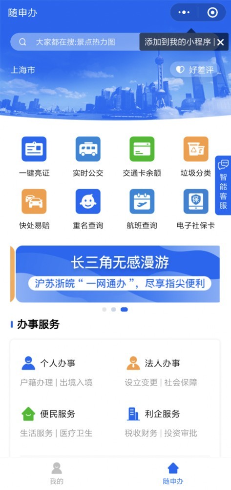 “隨申辦”小程序的落地應(yīng)用,將極大提高上海市民辦事效率、提高生活幸福感。比方說(shuō),自從垃圾分類政策執(zhí)行以來(lái),干垃圾、濕垃圾總是“傻傻分不清”,現(xiàn)在只要打開“隨申辦”小程序,輕松查詢垃圾類別。不僅如此,公積金、保險(xiǎn)理賠等過(guò)去需要耗費(fèi)大力時(shí)間排隊(duì)處理的事項(xiàng),現(xiàn)在市民只需動(dòng)動(dòng)手指即可查詢、辦理,省時(shí)省力。同時(shí),證件的電子化,讓我們打開微信小程序即可輕松自證身份,之前因一件證件沒(méi)帶,耽誤業(yè)務(wù)辦理的情況得以解決。