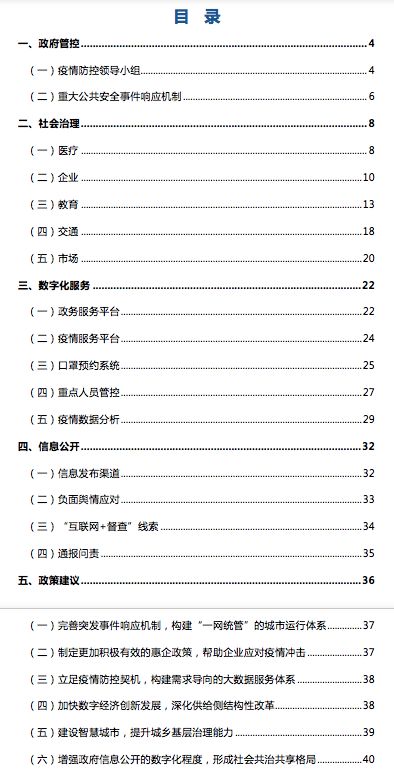 摘要:新冠肺炎疫情發(fā)生以來(lái),中國(guó)政府和人民全力以赴抗擊疫情。全國(guó)動(dòng)員、全面部署、快速反應(yīng),采取了最全面、最嚴(yán)格的防控舉措,打響了一場(chǎng)疫情防控的人民戰(zhàn)爭(zhēng)。本報(bào)告為四川省疫情防控?cái)?shù)據(jù)分析報(bào)告,報(bào)告中采用的相關(guān)數(shù)據(jù),均來(lái)自各地各級(jí)政府網(wǎng)站、官方微博微信以及官方統(tǒng)計(jì)渠道,從政府管控、社會(huì)治理、數(shù)字化服務(wù)、信息公開(kāi)四個(gè)維度開(kāi)展數(shù)據(jù)采集、分析??傮w來(lái)看四川省21個(gè)市(州)在建立響應(yīng)機(jī)制、企業(yè)救助、數(shù)字化教育、交通管理、市場(chǎng)穩(wěn)定等領(lǐng)域均開(kāi)展了相關(guān)防疫措施,通過(guò)省級(jí)政務(wù)服務(wù)平臺(tái)渠道快速搭建了相關(guān)疫情服務(wù)平臺(tái),提供民生關(guān)切的疫情信息發(fā)布、疫情線索申報(bào)、醫(yī)療服務(wù)、同行程人員查詢(xún)、口罩預(yù)約等服務(wù),同時(shí)全省各市(州)政府也通過(guò)新聞發(fā)布會(huì)、官方媒體等及時(shí)公布疫情相關(guān)信息。
