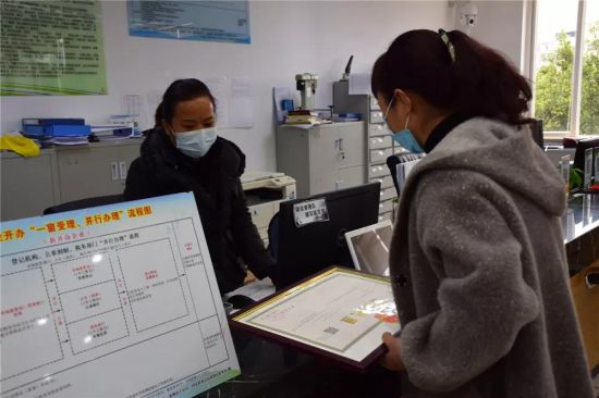 圖為張桂英通過預約后,在半小時內(nèi)辦好個體工商營業(yè)執(zhí)照