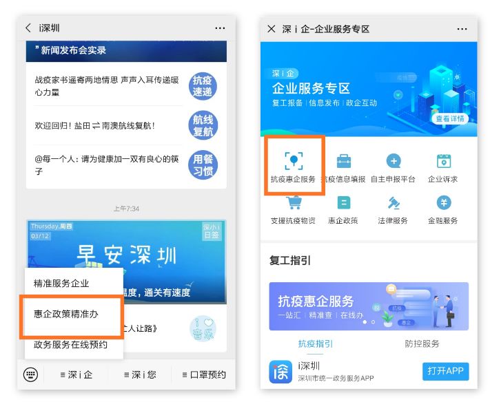 渠道二 “i深圳”APP“深i企-企業(yè)服務”專區(qū)點擊“抗疫惠企服務”。